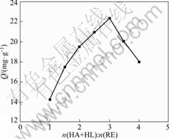 Fig.1 Adsorption capacity Q changed with extraction ratio of HA+HL to RE