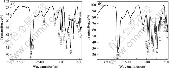 Fig.6 IR spectra of Cyanex272-P507 solvent before (a) and after (b) extracting heavy rare earths