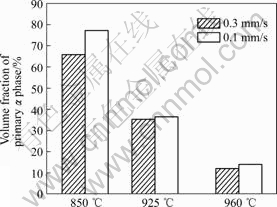 Fig.2 Effect of deformation temperature and speed on volume fraction of primary α phase