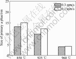 Fig.3 Effect of deformation temperature and speed on size of primary α phase