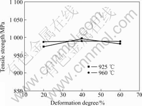 Fig.7 Effect of deformation degree and temperature on tensile strength of primary α phase