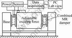 The principle of MR damping device is shown in Fig.1. The device consists of an amplitude controller which adjusts the exciting force, the signal collecting device combined MR damper, computer software for dynamic analysis, etc. Combined MR dampers can achieve variable damping by changing the MR fluid flow resistance using a cylindrical gap under a variable magnetic filed. In addition, the rubber spring works alone without magnetic field.