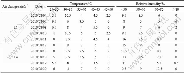 Table 3 Statistics times (h) at different temperatures and relative humidities distribution on test day