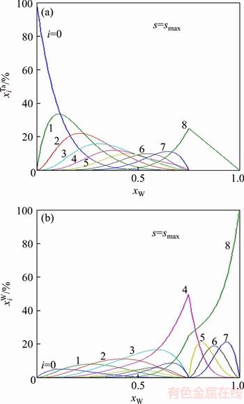 of Ta and W alloy genes of DO3-TaW3 ordered alloys as a function of composition xW are shown in Figure 2. When s=smax, the distribution characteristics are as follows.