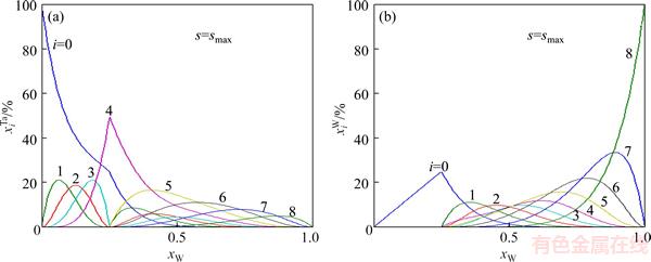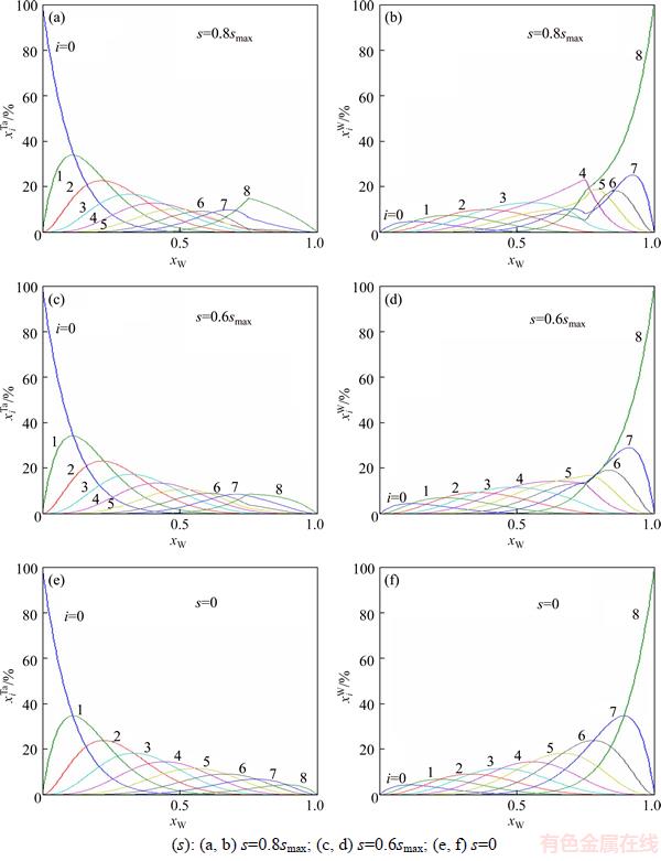 2) When s=smax, the concentrations of alloy genes of stoichiometric DO3-TaW3 compound are equal to those of alloys, that is,