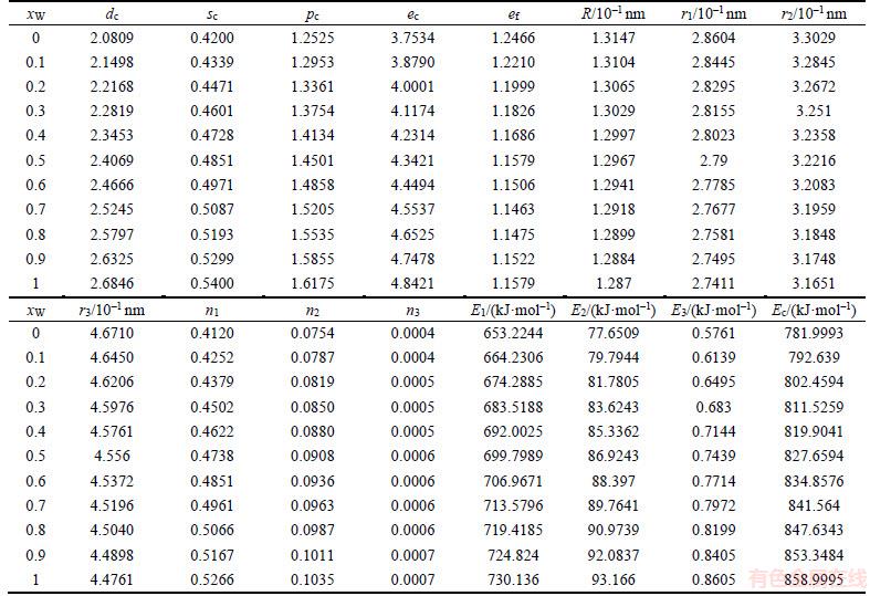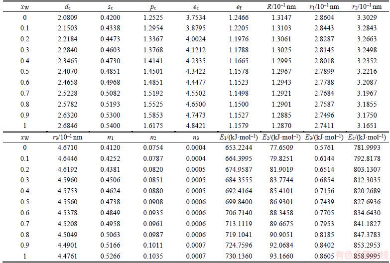of alloy genes as functions of composition xW and ordering degree (s=0.8smax, s=0.6smax and s=0) of DO3-TaW3 ordered alloy are shown in Figure 3. From Figure 3, when ordering degree decreases, alloy genes