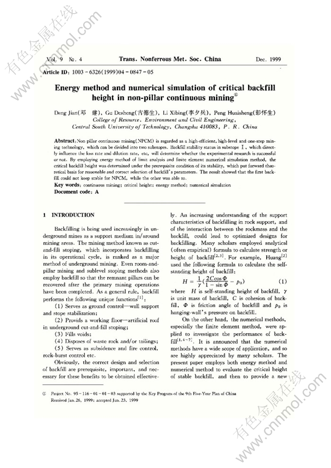 论文作者:邓建 古德生 李夕兵 彭怀生