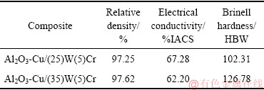 表2 Al2O3-Cu/(W, Cr)复合材料的综合性能