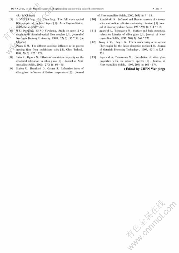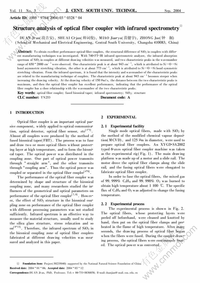 Key words:optical fiber coupler; fused biconical taper; infrared spectrometry; SiO2; structure