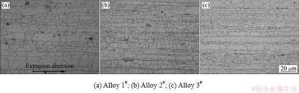Fig. 1 Optical micrographs of longitudinal section of 7020 aluminum alloys
