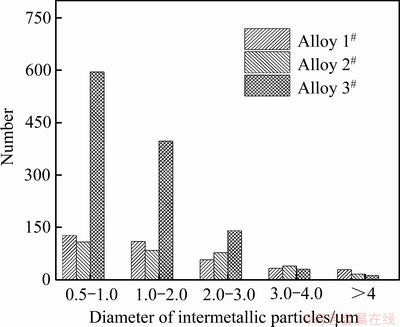 Fig. 3 Size statistics of intermetallic particles of different alloys
