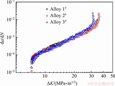Fig. 6 Fatigue crack growth rate curves of different alloys