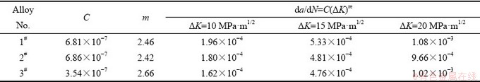 Table 4 Fatigue crack growth data of different alloys at specified △K