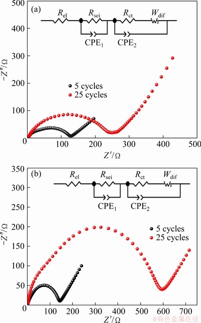 Table 1 Fitted parameters of impedance spectra of half- cells after specific cycles