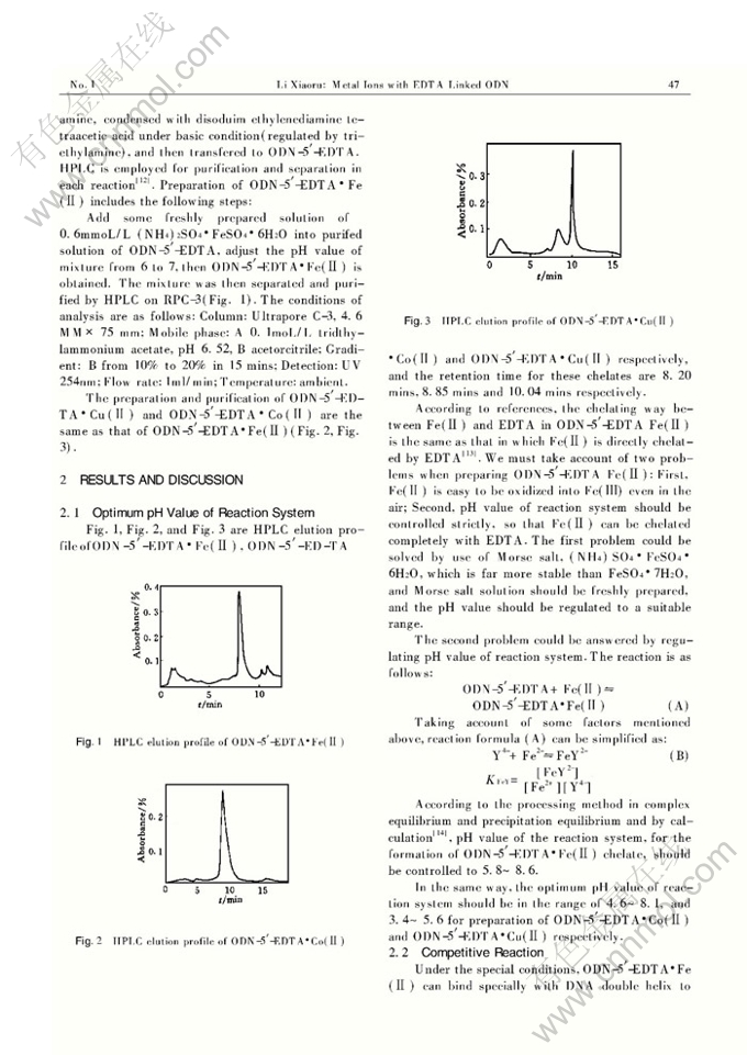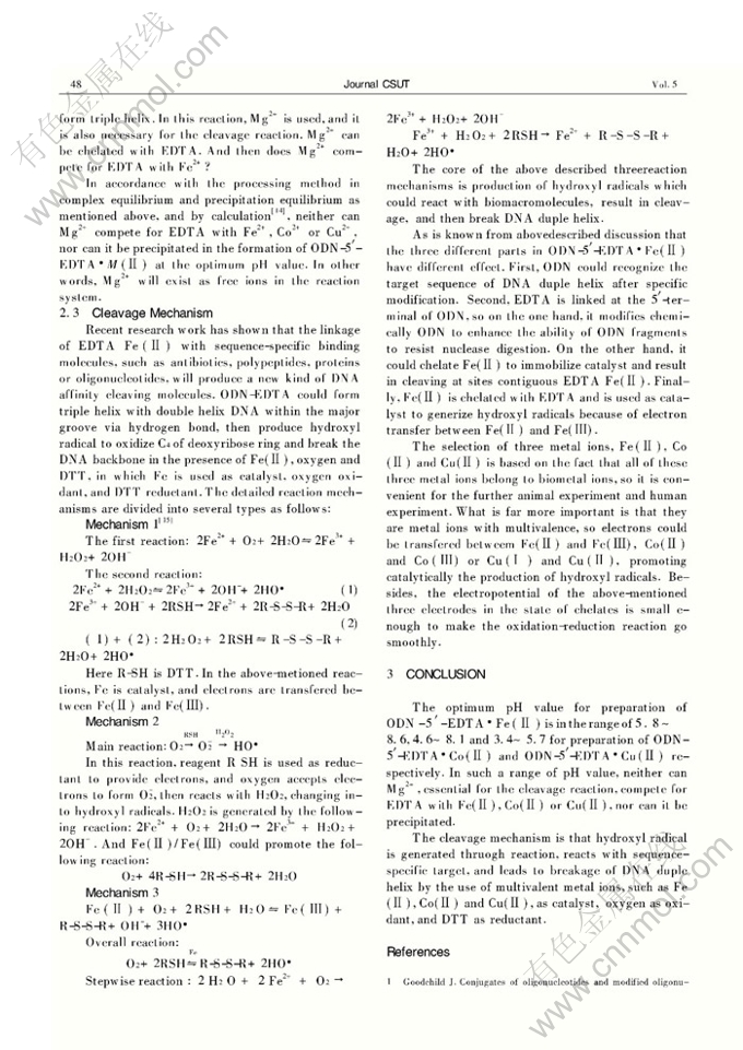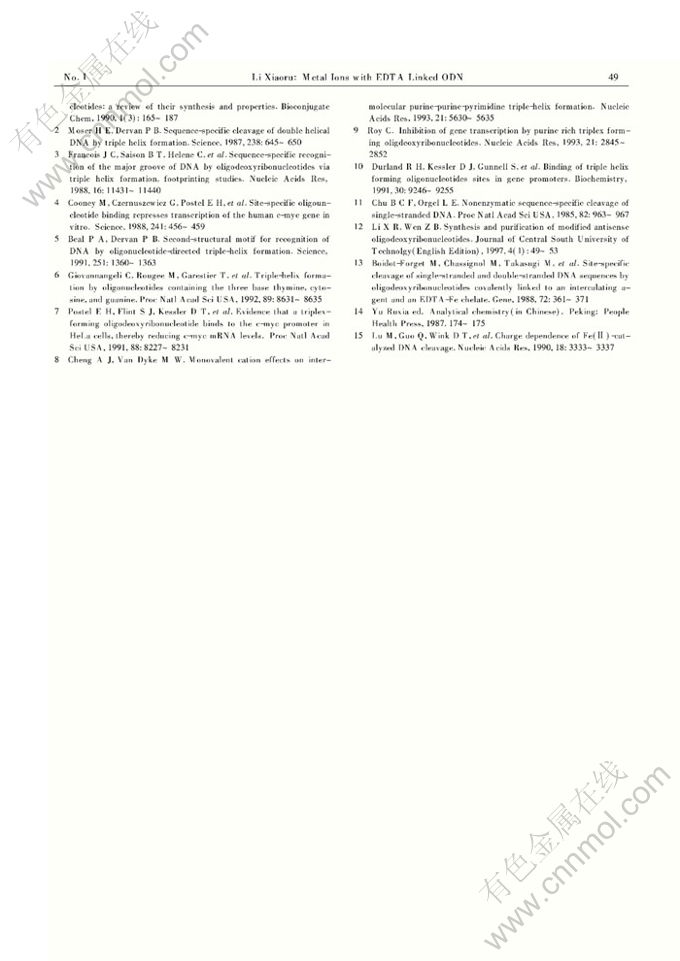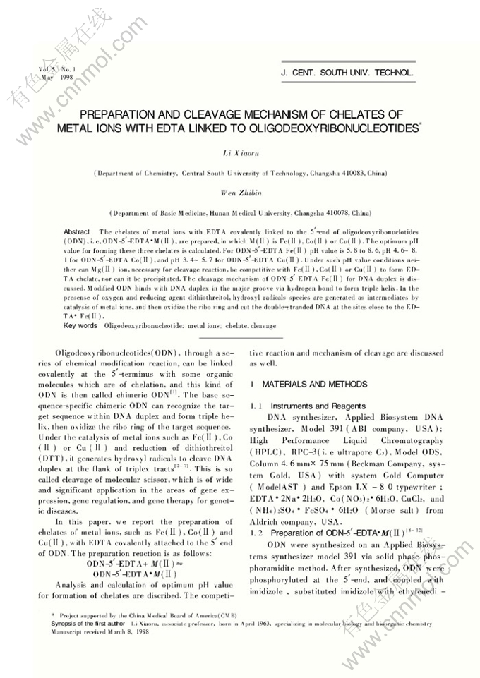 Key words:Oligodeoxyribonucleotide; metal ions; chelate,cleavage