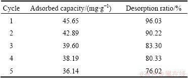 The desorption studies were performed using 3% (w/v) BICB with 100 mL of 50 mg/L Cu(II) solution. After adsorption experiments (12 h), the adsorbed metal ions were eluted with 0.1 mol/L NaOH. The eluted biosorbent was then washed thoroughly with distilled water until the pH of the elute solution reached 7.0 and placed into metal solution for the subsequent adsorption-desorption cycle.