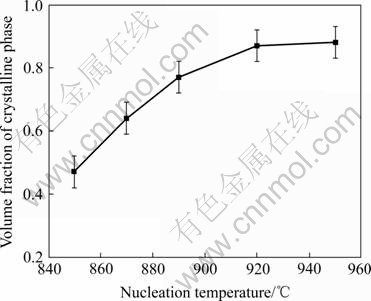 Fig.3 Dependence of volume fraction of crystalline phases on nucleation temperature