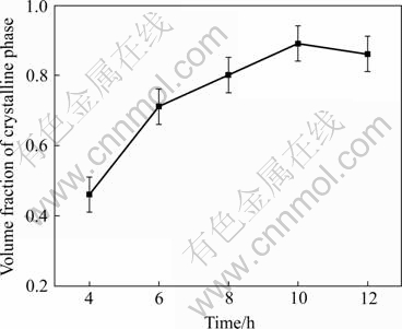 Fig.5 Dependence of volume fraction of crystalline phases on nucleation time