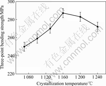 Fig.8 Variation of three-point bending strength as function of crystallization temperature