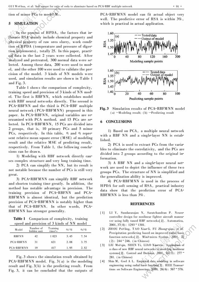 Key words:principal component analysis; multiple neural network; soft sensor; ratio of soda to aluminate; generalization ability