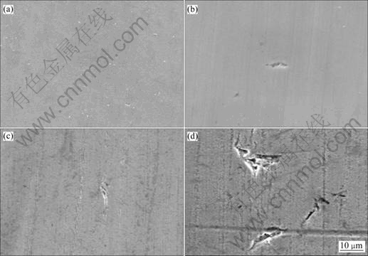 Fig. 3 Micrographs of nickel-base alloy G3 after corrosion under different S contents: (a) 0; (b) 1 g/L; (c) 10 g/L; (d) 100 g/L