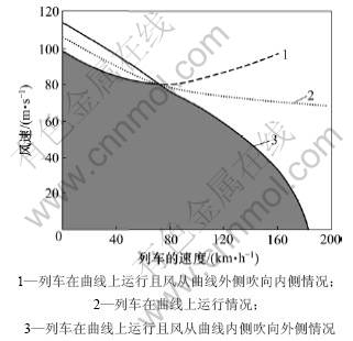 (5) 风力风向—路况(路堤、大桥、曲线、直线、挡风墙等)—列车外型与载重组合下的列车临界运行速度及速度限值计算;