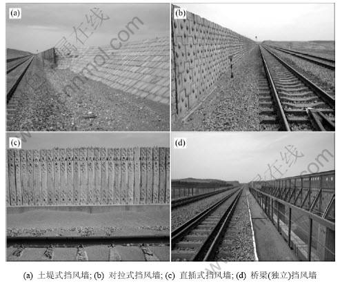 我国在新疆地区铁路沿线设置了各种形式挡风墙,图2所示为新疆地区铁路的几种挡风墙形式。