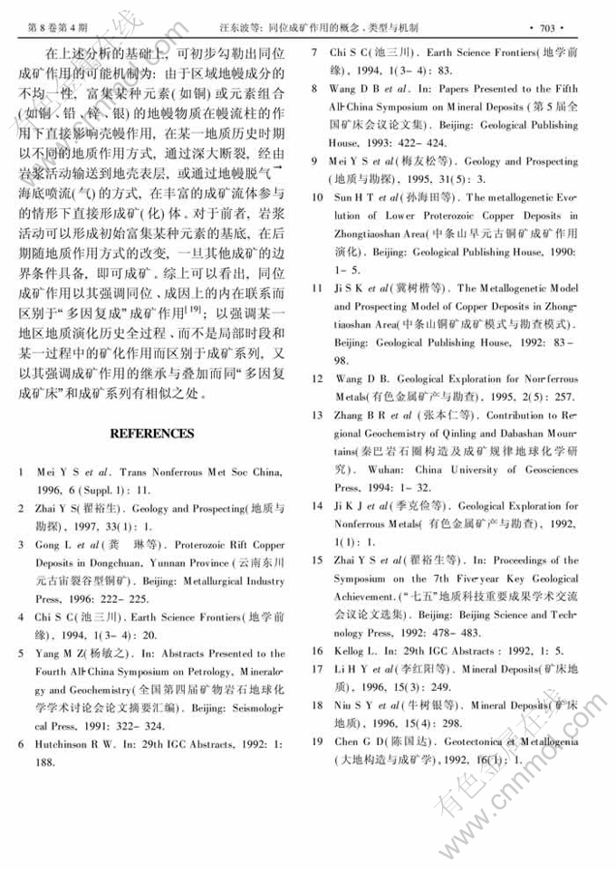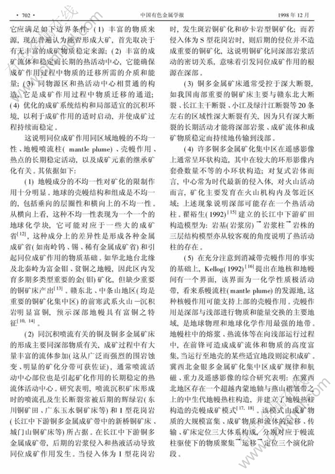 关键词:同位成矿作用; 铜多金属矿床; 地幔喷流柱; 成矿机制
