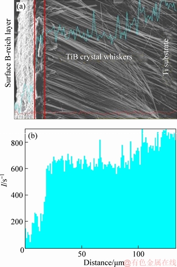 Figure 3 EDS line-scan of cross-section of TiB2-TiB/Ti sample
