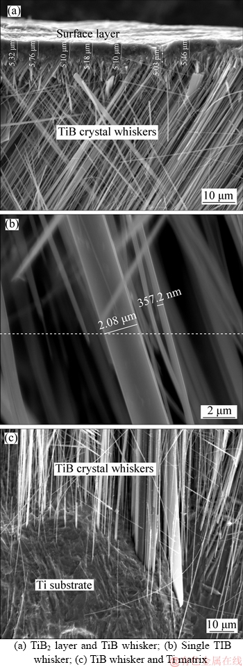 Figure 4 SEM images of cross-section of TiB2-TiB/Ti sample: