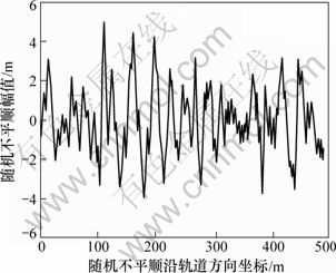 采用翟婉明等[1]介绍的方法进行随机不平顺的数值模拟。首先根据轨道随机不平顺功率谱求出频谱的幅值和随机相位,然后,通过傅里叶逆变换得到轨道不平顺的时域模拟样本。