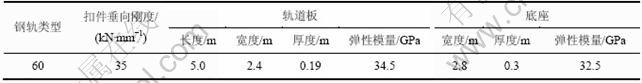 以1动+4拖高速动车组以300 km/h速度通过路基上单元板式无砟轨道为例,研究短波随机不平顺对车-无砟轨道-路系统振动特性影响。高速动力组参数见文献[8],轨道主要计算参数如表2所示。