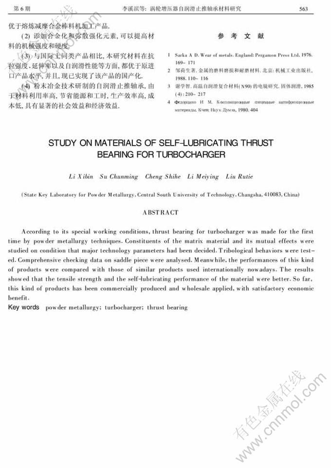 Key words:powder metallurgy; turbocharger; thrust bearing