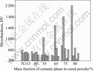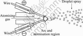 Key words:metallic powder; ceramic powder; cored wire; arc spraying; particle characteristic