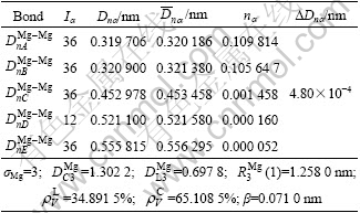 According to the calculation method of the valence electron structure (VES) of alloy proposed in Ref.[14], the VES of magnesium crystal cell is calculated on the basis of the structure and lattice constants of magnesium crystal shown in Fig.1, and the calculation results of the VES are shown in Table 2. In Table 2, σMg is the hybridization state of Mg atom;