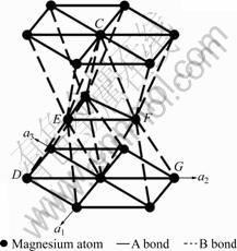 Fig.2 Space distributions of bonds A and B in magnesium crystal cell