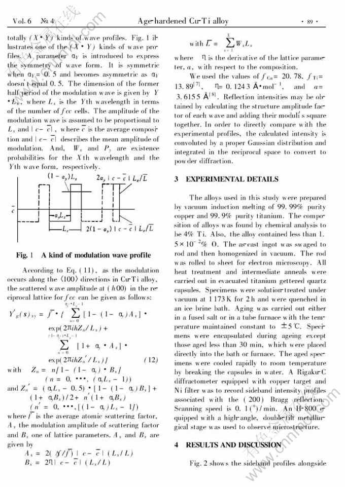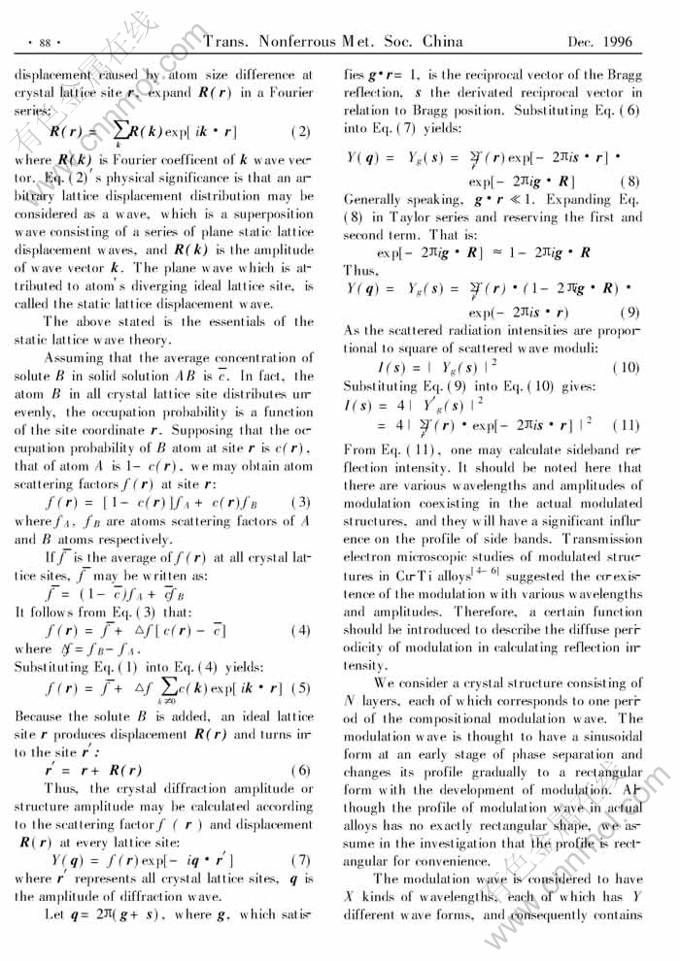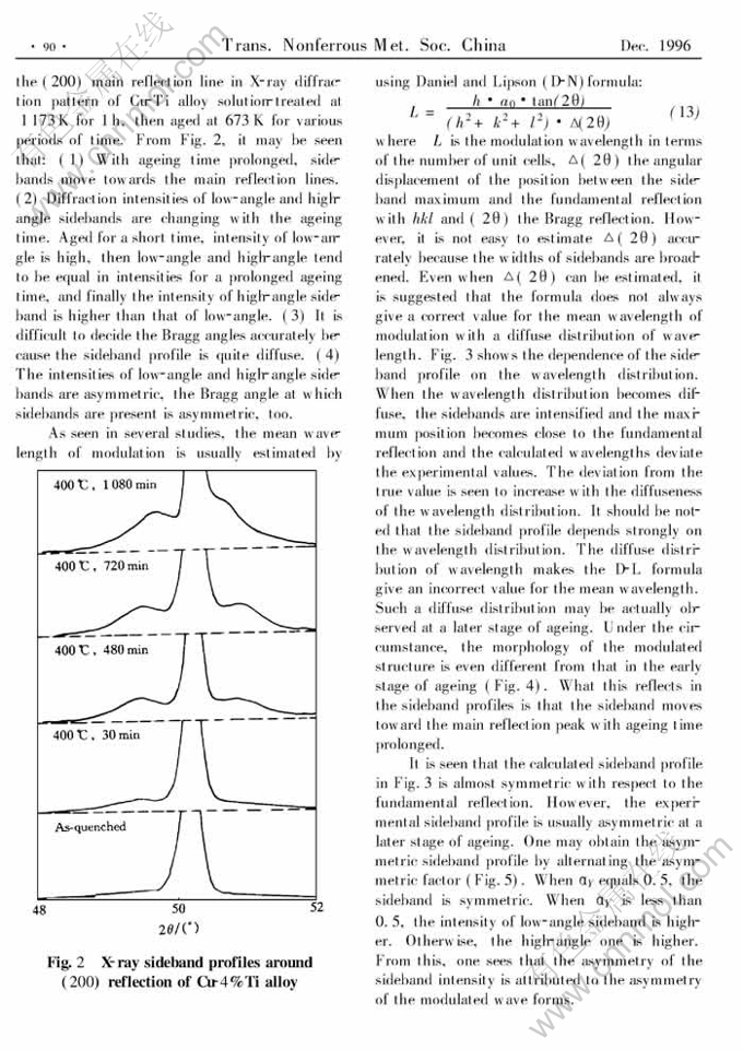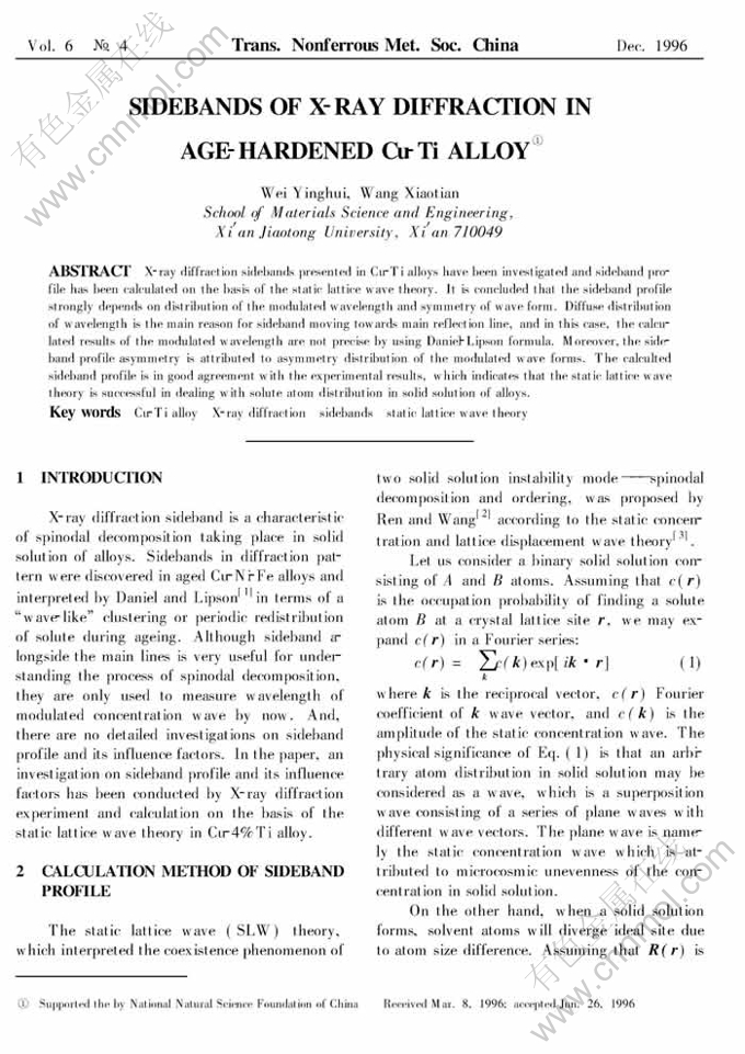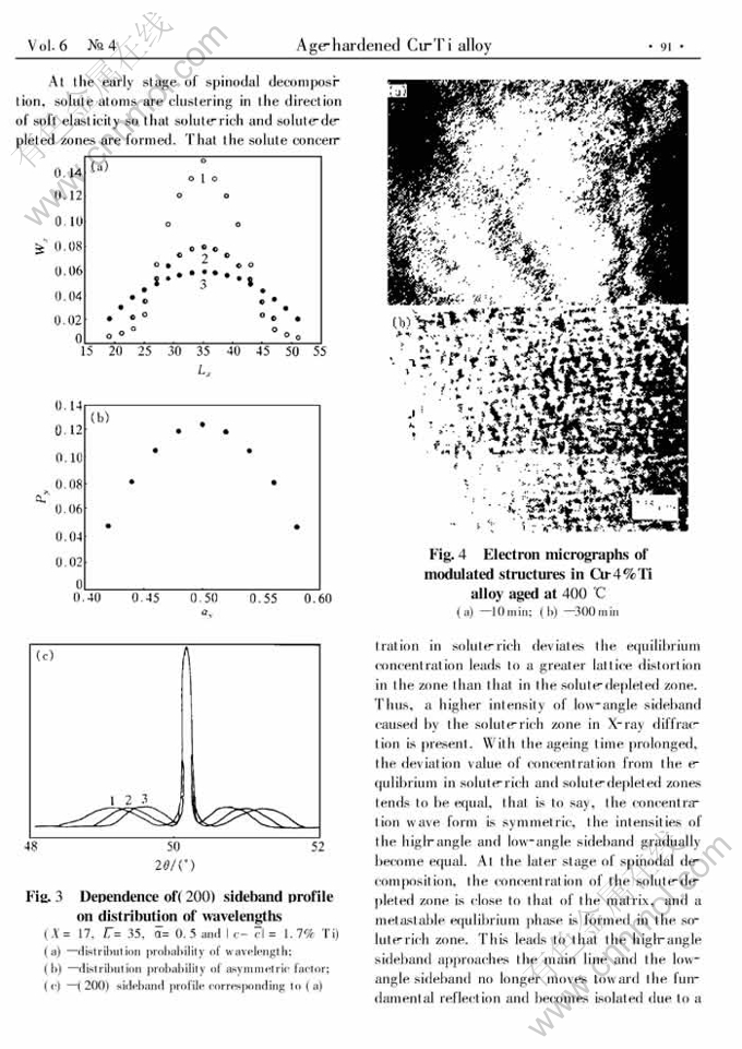 Key words:Cu-Ti alloy ;X-ray diffraction ;sidebands ;static lattice wave theory