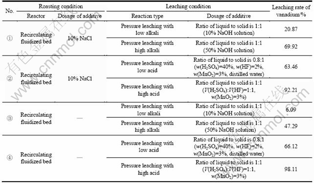 Table 3 Effect of leaching additive and dosage on leaching rate of vanadium under condition of recirculating fluidized roasting