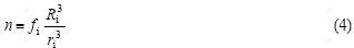 利用式(4)将式(8)表达为微粒尺寸大小D (D=2Ri)的函数: