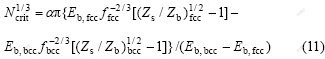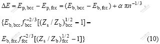 显然,当?E>0时,表示具有bcc结构微粒的结合能高于fcc结构微粒,此时bcc结构微粒更稳定;当?E<0,则fcc结构微粒更稳定;当?E =0时,表示两种结构的微粒具有相同原子结合能,此时即为微粒发生结构转变的临界位置,求得的微粒原子数Ncrit也为临界尺寸:
