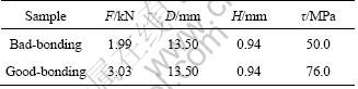Table 1 shows the compression-shear test results of the bad-bonding and good-bonding samples. It is clearly that the value of the bad-bonding sample is about one third of that of the good-bonding sample. The gap between the values of shear strength contributes to the fracture place happening at the interface. The test result of the shear-strength for good-bonding sample is 76.0 MPa. For the fracture happened in aluminium layer only, it can be deduced that the shear-strength of the good-bonding interface is higher than 76.0 MPa.