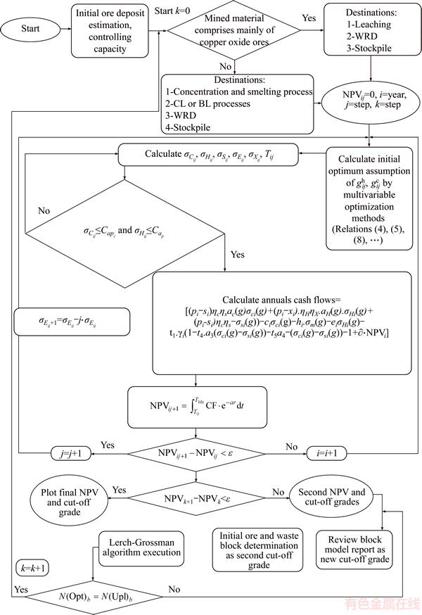 Figure 1 Determining mined material destination, cutoff grades, and UPL of the proposed algorithm