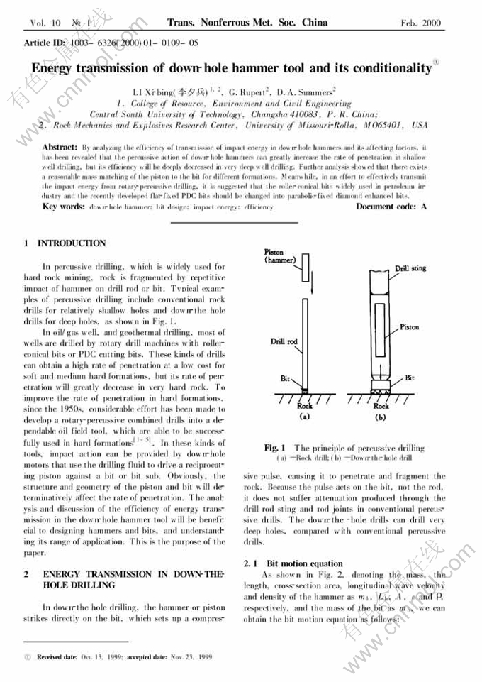 Key words:down-hole hammer; bit design; impact energy; efficiency