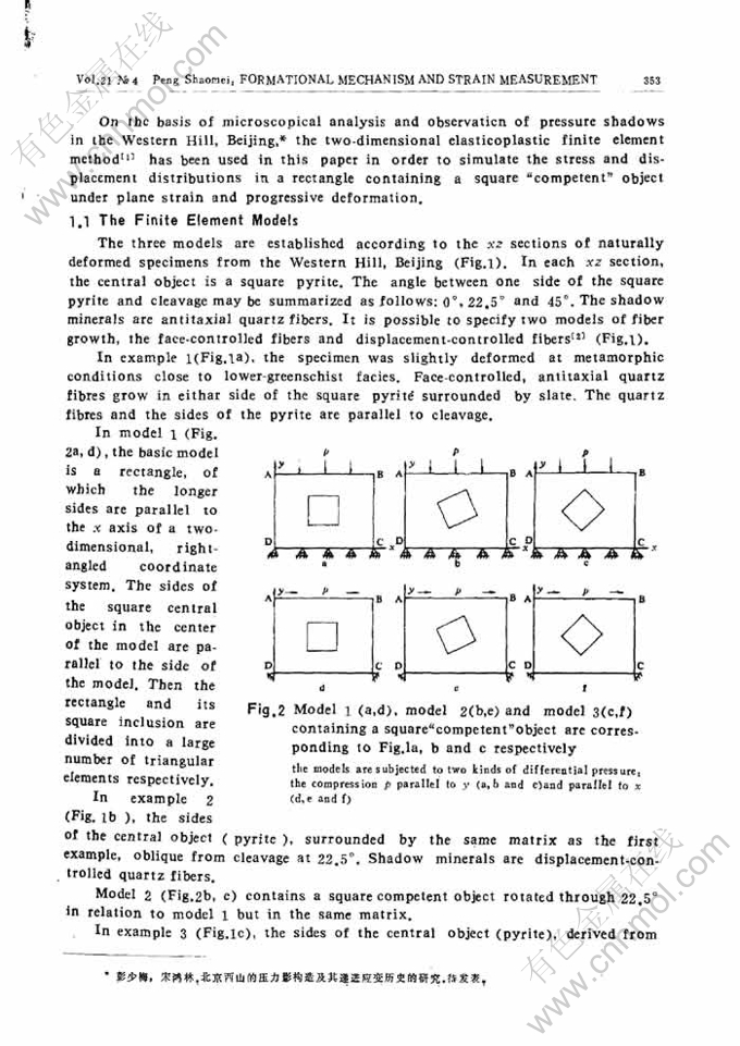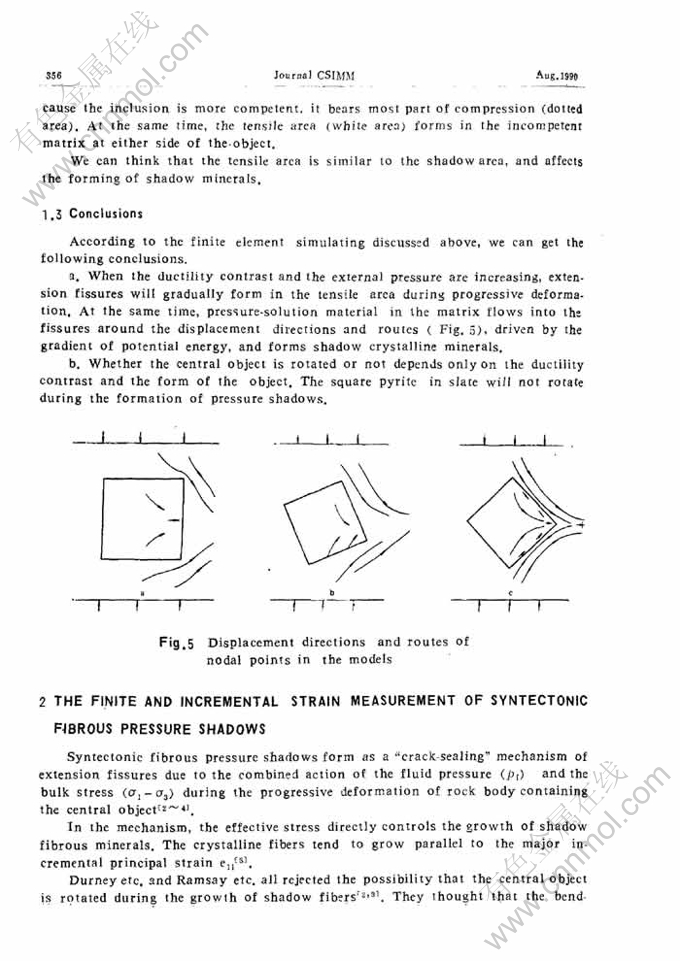 Key words:finite element method; finite; increment; strain/fibrous pressure shadows; syntectonic; “crack-sealing”mechanism