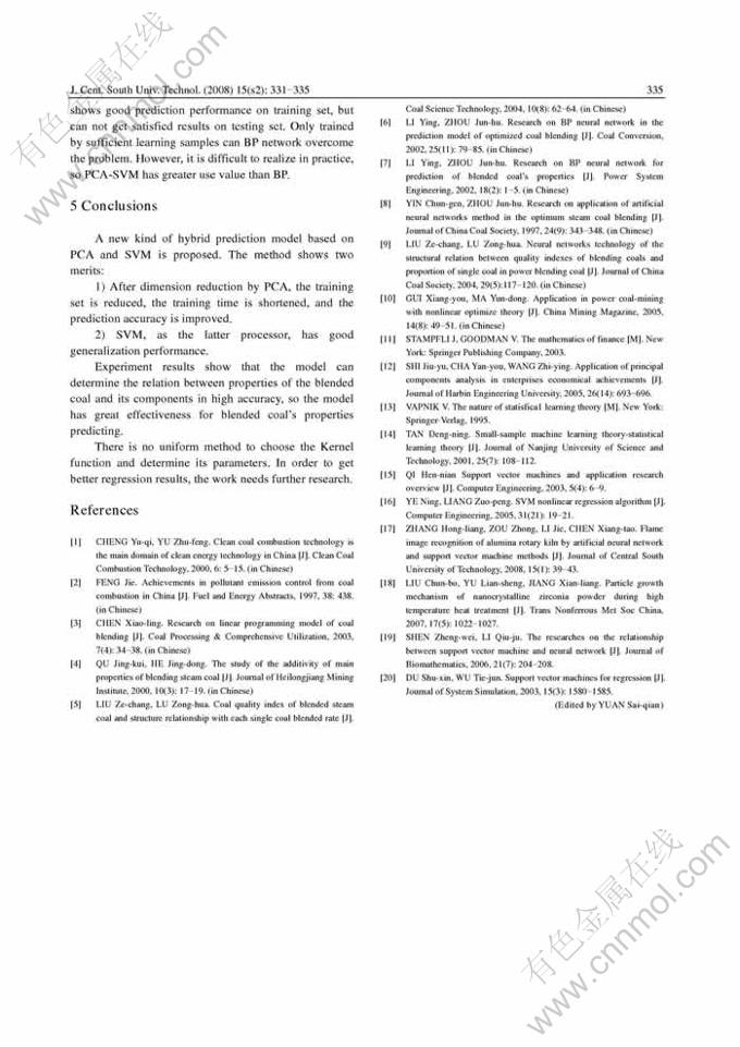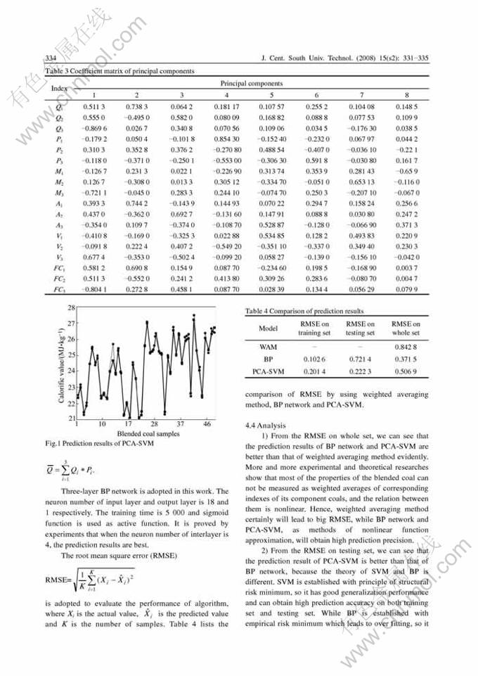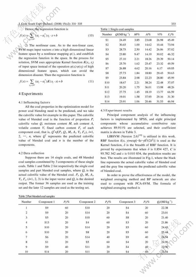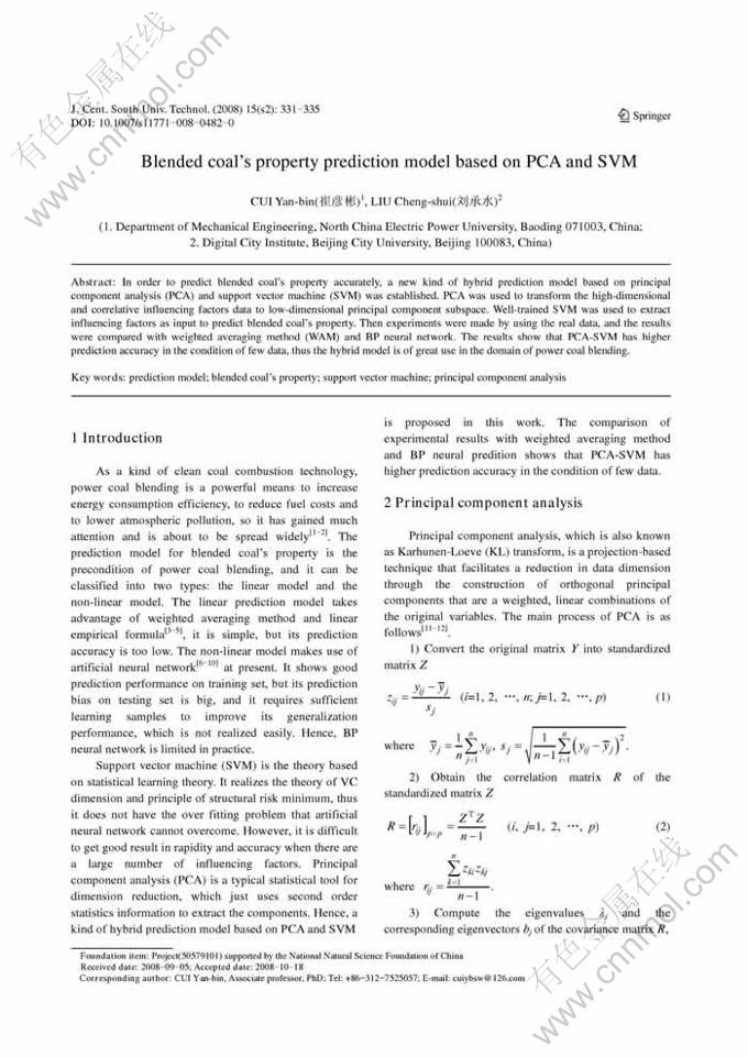 Key words:prediction model; blended coal’s property; support vector machine; principal component analysis