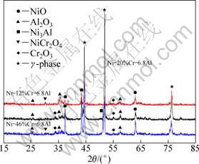 Figure 7 shows the XRD patterns of the as-cast alloys after LTHC. It can be seen that after hot corrosion at 873 K for 100 h in the mixtures, the XRD pattern of Ni-12Cr-6.8Al alloy displays a strong peak of NiO which is even higher than that of the substrate. In addition, there are also obvious peaks of Ni3S2 and a little spinel of Cr. Other peaks of Ni-12Cr-6.8Al alloy refer to sodium chloride and sodium sulfate. Ni-16Cr-6.8Al alloy only has peaks of Ni oxide, while Ni-20Cr-6.8Al alloy has both chromia and NiO peaks. The result of XRD is in conformity with the SEM observations and EDX analysis.