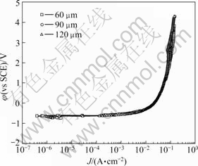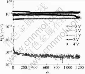 Fig.6 Time—current density curves of 60 μm thickness coating
