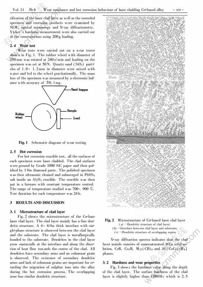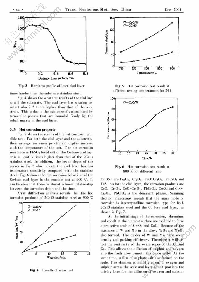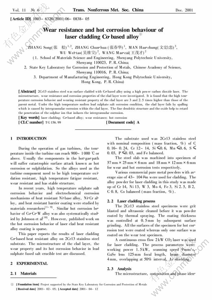 Key words:laser cladding; Co-based alloy; wear resistance; hot corrosion