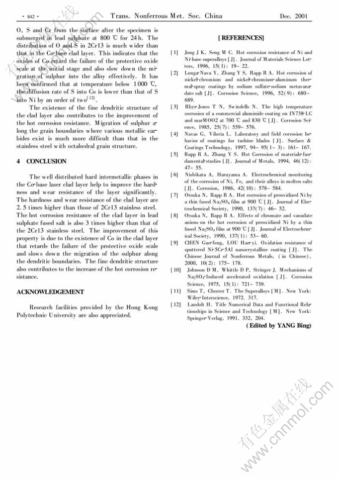 来源期刊:中国有色金属学报(英文版)2001年第6期