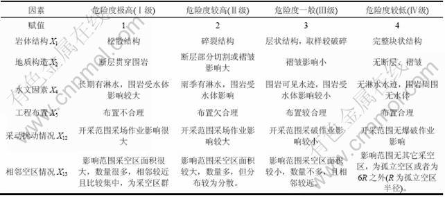 表3 采空区危险性评价的定性指标分级与赋值